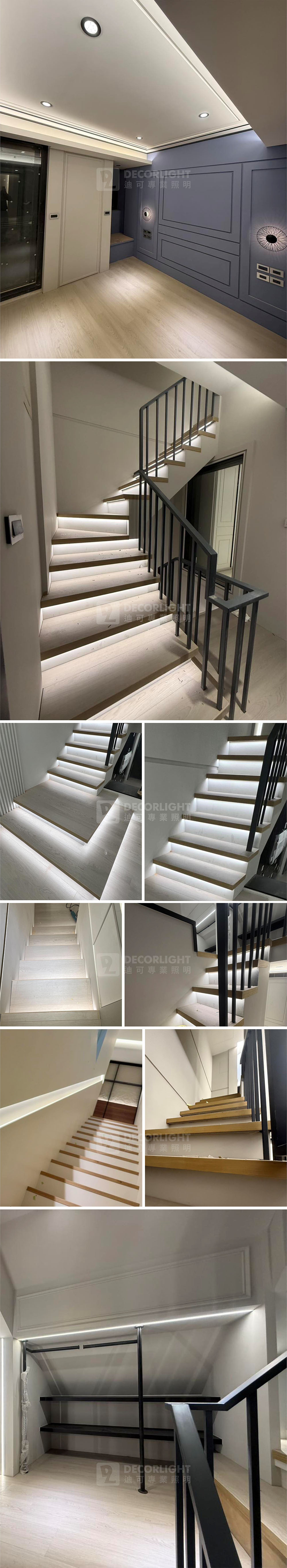 一般樓梯都只用壁燈或吸頂燈來做燈光照明,但用了線型 LED 燈條, 後整個立體感十足,頓時成了全室的主角!! 歡迎來電洽詢相關資訊! 案場地點: 松山區 #燈具安裝 #照明設計與規畫 #線型LED照明 #鋁條燈 #燈光控制