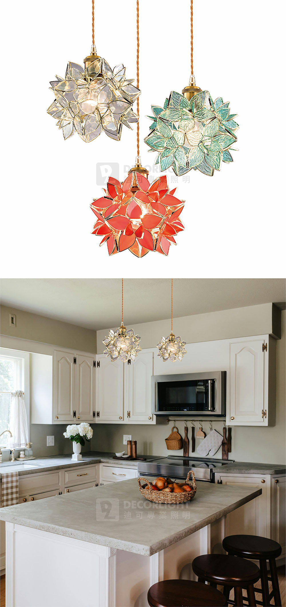 | 材質顏色 | 銅材、鋼材、手工玻璃 / 金銅色、橘紅、水藍、透明 |